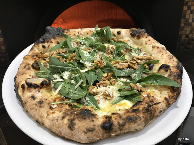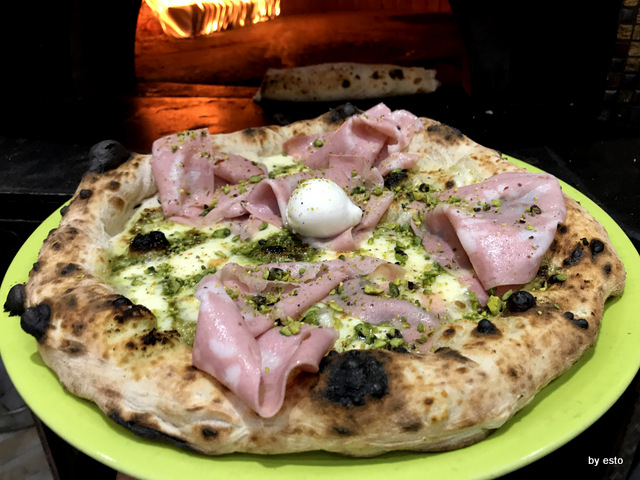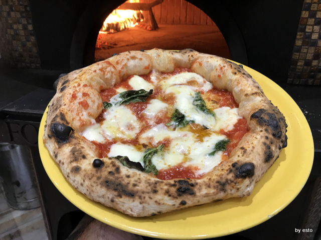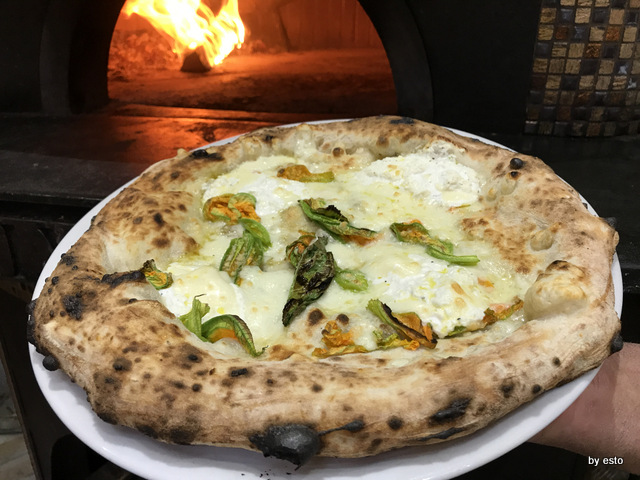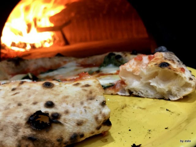 La pizzeria di Gaetano Paolella è ormai una istituzione ad Acerra, la città di Pulcinella. Tre sale divise dal forno a pochi metri dall’asporto da cui è partita l’avventura dei trefratelli. Oggi Andrea sta a Salerno mentre Emanuele, il più piccolo, bravo e talentuoso pizzaiolo lavora con il fratello. Tutta la famiglia è impegnata nel lavoro ed è la vera forza di questa azienda che vanta oltre una trentina di persone al lavoro. Ci torniamo con piacere per una vera e propria pausa pranzo, conosciamo i fritti per averli assaggiati e dal menu vario ricco e stagionale, scegliamo una provolae pepe a velo, ossia con il latticini tagliato sottile e appoggiato alla uscita dal forno e una margherita classica preparata proprio da Emanuele. Non rinunciamo a provare anche lamargherita da asporto, che si differenzia dalle proposte della sala per essere un impasto diretto classico napoletano. Perfetta.