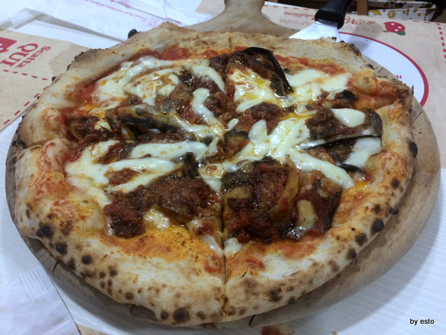 Assaggiando quella con scarole e quella con parmiggiana (due g) di melanzane.