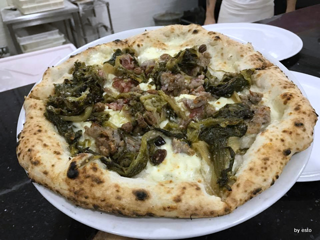 Come sempre grande attenzione all’impasto, che è e resta un diretto tradizionale, lievitato però nelle 24 ore, dalla consistenza, dopo cottura, soffice e leggera.