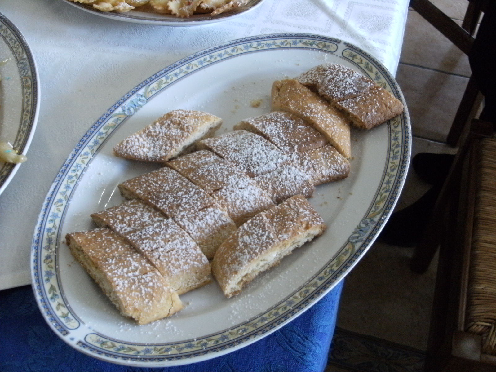 Per dessert pastuccelle ripiene di crema di castagne e di mandorle; scauratielli con miele; torta alla crema di limone e pinoli; e biscotti con marmellata di fichi.
