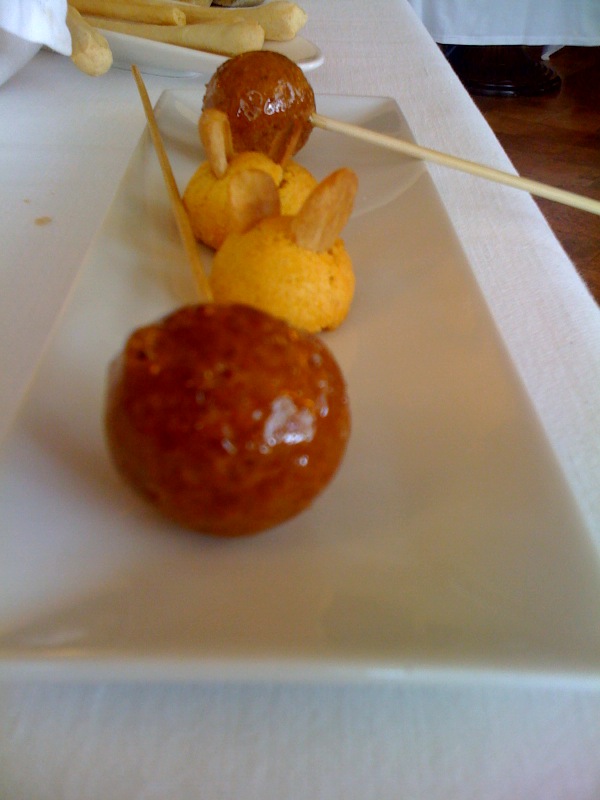 Via ad una raffica di assaggini che a me sono sembrati “sperimentali” ovvero l’embrione di qualcosa che verrà. Forse nel dubbio “nominale“ del work in progress, i camerieri ce li hanno presentati con la riduttiva dicitura di snack. Ne ricordo almeno cinque, come un’incredibile spuma di cavolfiore con al centro un cuore di aceto balsamico vecchio di 50 anni e poggiato su un emulsione di funghi porcini