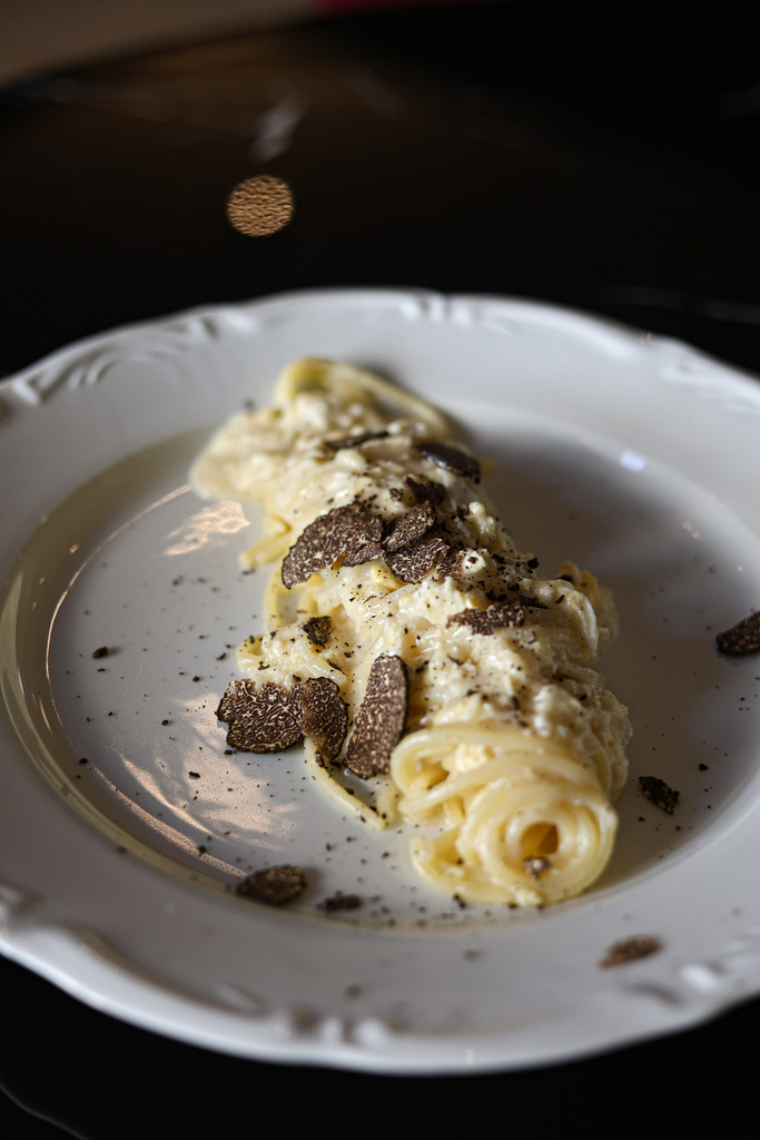 Non mancano gli spaghetti a poveriello con tartufo, essenziali ma sorprendenti, e l’intramontabile fagioli e cozze, equilibrio perfetto tra terra e mare.
