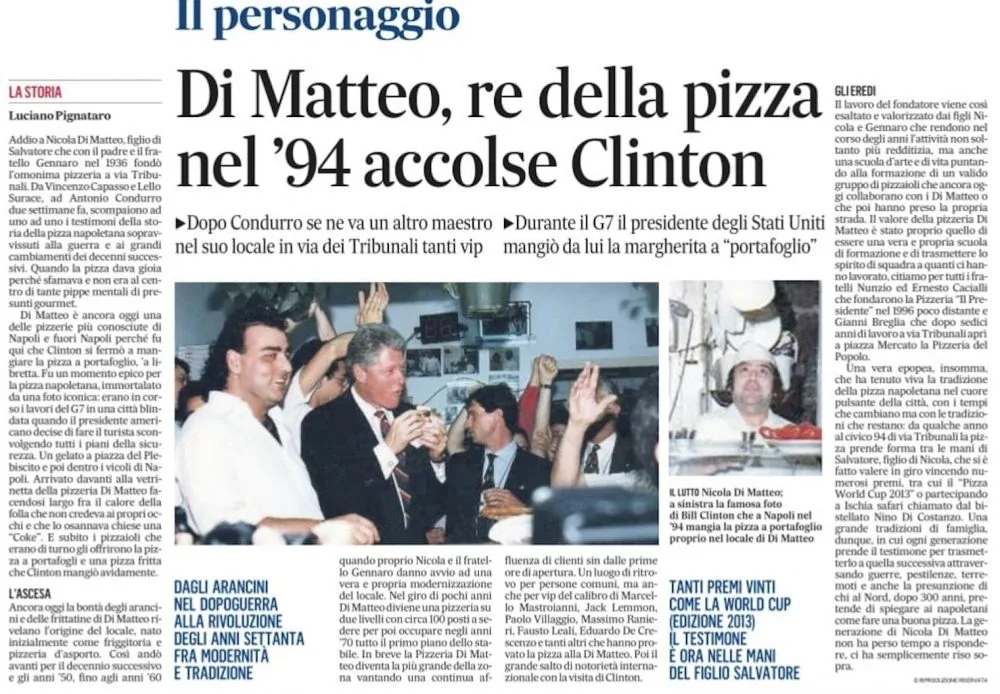 Nicola Di Matteo 11/1/2022 Torna a: Addio a Nicola Di Matteo, rilanciò la pizzeria dove Clinton si fermò nel 1994