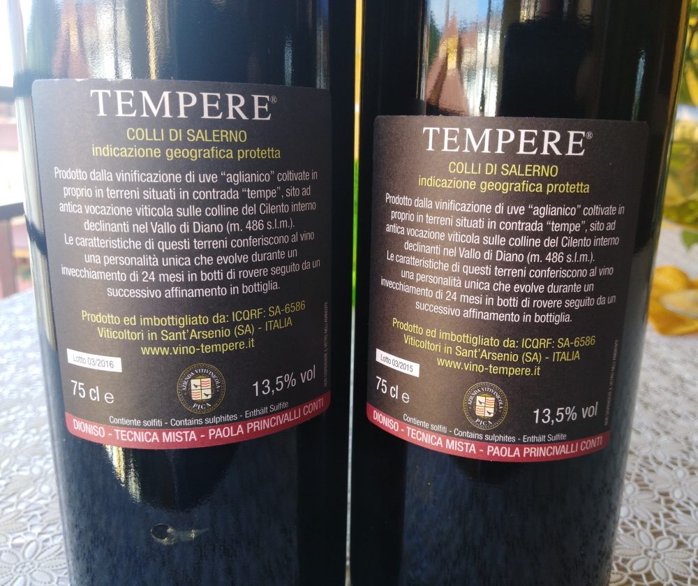 Aglianico Colli di Salerno Igp millesimi 2015 e 2016 – Tempere
