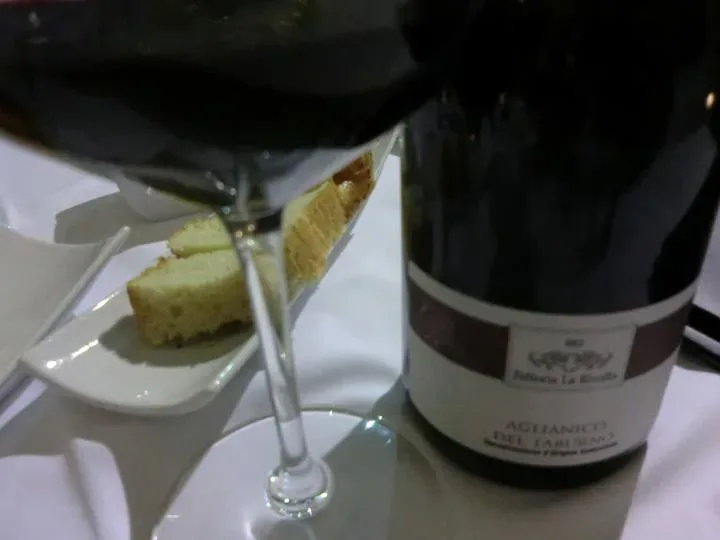 Le sorprese dell’Aglianico del Taburno non finiscono mai: prendi la 2007, annata piuttosto calda, scegli una bottiglia base, ossia in uscita dall’azienda nettamente sotto i dieci euro, aspetta quattro anni ed il risultato è uno straordinario bicchiere equilibrato e fresco, da bere sull’agnello laticauda preparato da Angelo D’Amico nel ristorante Le Macine del nuovissimo Una Hotel, l’albergo sorto dalle ceneri del vecchio pastificio Rummo a Benevento.