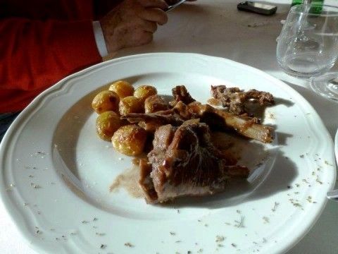 Infornate a 180° per circa 40 minuti, addensare il sugo con un roux (fondo) di burro e farina e servire caldo con patate cotte al forno.