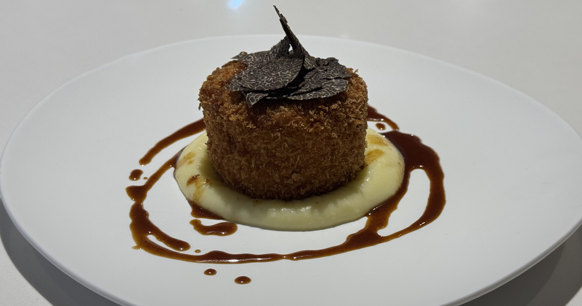 L’ispirazione per questo piatto nasce dalla voglia di Salvatore Davide di valorizzare i prodotti locali e a km 0 di Castellderçol e dintorni. L’obiettivo della sua ricetta infatti, è quello di esaltare i sapori autentici della regione, difatti l’agnello proviene da un allevamento locale, le patate da Caldas de Montbui e il tartufo nero da Castellcir, garantendo nella sua proposta ingredienti freschi e di alta qualità. Inoltre, l’abbinamento di una cottura lenta e precisa a tecniche di frittura contemporanea, aggiungeranno struttura e profondità al piatto.