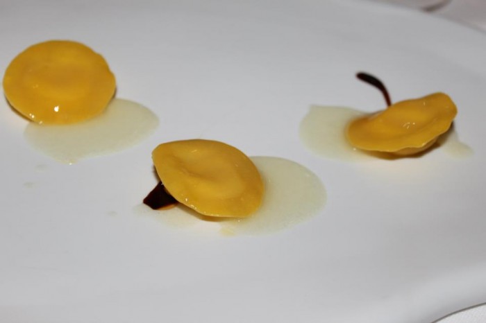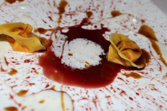 Il mediterraneo che incontra la tradizione Emiliana, il piatto simbolo di questa fusione è sicuramente “il mio tortello di zucca”, un tortello di zucca fatto a mano con riduzione di aglianico salsa di Provolone del Monaco e jus di maiale.