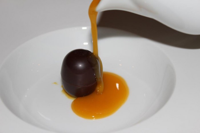 occhi di parmigiano reggiano 36 mesi con laccato di cipolla di Montoro zafferano e ristretto di caffè