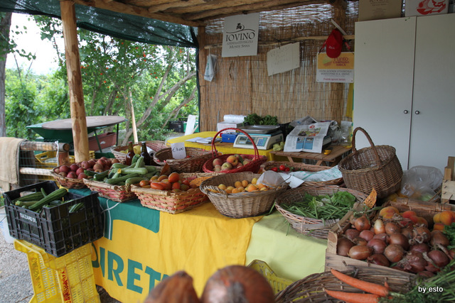 Intanto raccoglie le albicocche e le ciliege che vanno sul banco della spesa amica.