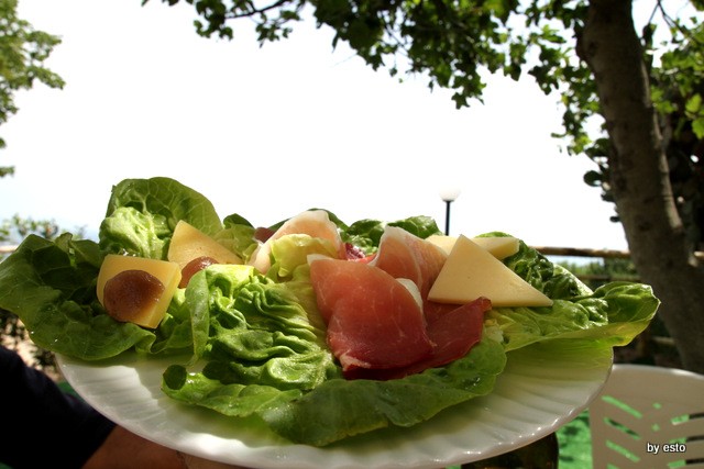 La Campania è protagonista anche a tavola, dove a pranzo e a cena su prenotazione e con menù fisso, si possono gustare prodotti a km 0 della famiglia Iovino e piatti della tradizione partenopea, in chiave un po’ rivisitata. Il nostro pranzo comincia con un tagliere di salumi e formaggi campani e con un fritto di mare e di terra.