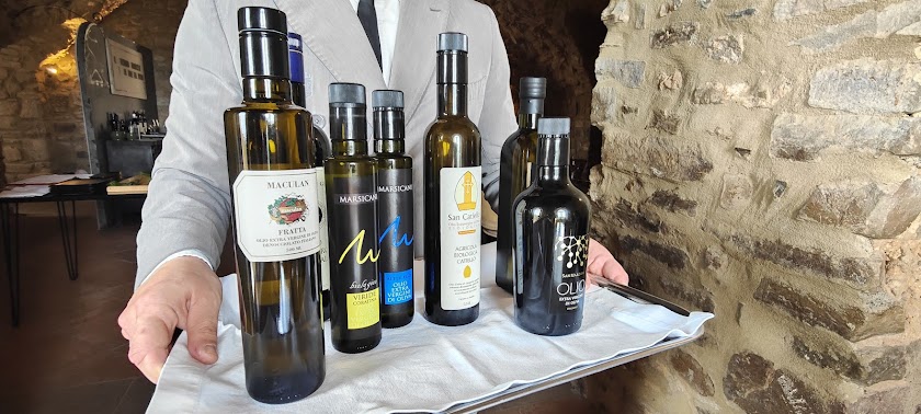 Atmosfera magica quella della sala ristorante – così come quella dell’intera struttura con un panorama a perdita d’occhio – tra arredi minimal, dettagli antichi e moderni mai lasciati a caso, cura dei particolari e diversi spazi in cui vivere molteplici esperienze. Non solo di gusto. E così ecco le 16 camere del boutique hotel ricavate nelle torri con le due piscine riservate alla clientela alloggiata, il Rivellino Sunset Bar che d’estate è lo spazio dedicato a suggestivi aperitivi al tramonto, la cantina, la l’oleoteca in cui realizzare “experience” guidate alla scoperta dell’olio extravergine d’oliva, spazi per cooking class dedicate alla pizza e alla pasta fresca, wine tasting e tour in vigna poco distanti perché il turismo esperienziale piace sempre più alla clientela italiana e straniera.