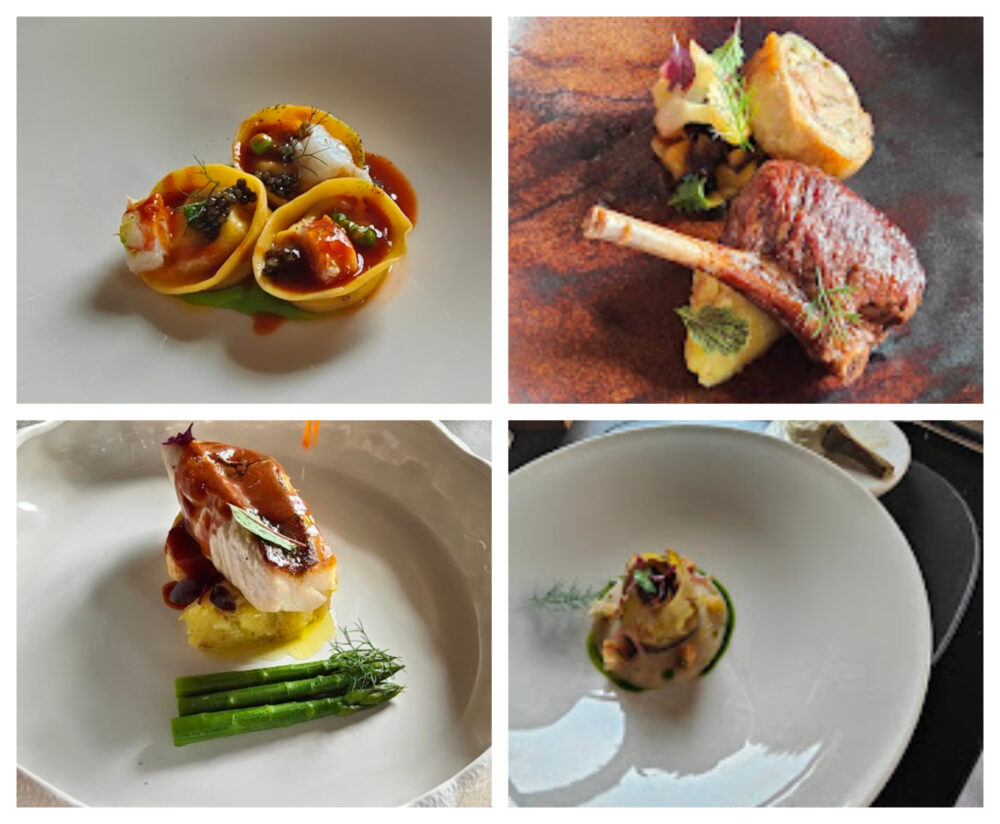E così nel Bistrot dei Sanseverino (aperto ogni sera a cena, sabato e domenica anche a pranzo) oltre ai due menu degustazione (Il Cilento e la Tradizione: percorso di 5 portate a base di verdure, legumi e pasta; 75 euro vini e bevande escluse e Il Cilento e il Mare: 5 portate a base di pescato locale ed eccellenze territoriali; 90 euro vini e bevande escluse) il viaggio di gusto dello chef di origini salernitane profondamente legato alla sua terra, si esprime attraverso piatti come il Carciofo farcito con prezzemolo e il suo gambo arrostito, presentato con una spuma souffle, il Gambero rosso al forno con infusione di mozzarella ma proposto anche in versione cruda con la salsa di soia, e poi ancora il Tortello con scampi, caviale e crema di piselli, l’Agnello in porchetta con patate ripassate, scottadito e ciambotta in agrodolce che richiama quella cilentana, la Gallinella di mare con il suo ristretto, asparagi e pane tostato, la sfoglia croccante e liquirizia con mango a pezzetti e gelato alla banana. E “sua maestà” il babà servito in tavola in una delicata bagna agrumata e profumata con baccelli di vaniglia, con crema pasticcera e una croccante Santa Rosa.