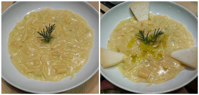 Ingredienti per 6 persone: 200g. di pasta mesca Francesca (mista Gragnano), 2 patate, 120 g. di Provolone del Monaco di media stagionatura (circa sei mesi) 1 cipolla 1 costa di sedano 60 g. di olio extravergine dop Penisola Sorrentina, un rametto di rosmarino, sale, 50 g. di caciocavallo Sorrentino ed infine provolone del monaco grattugiato