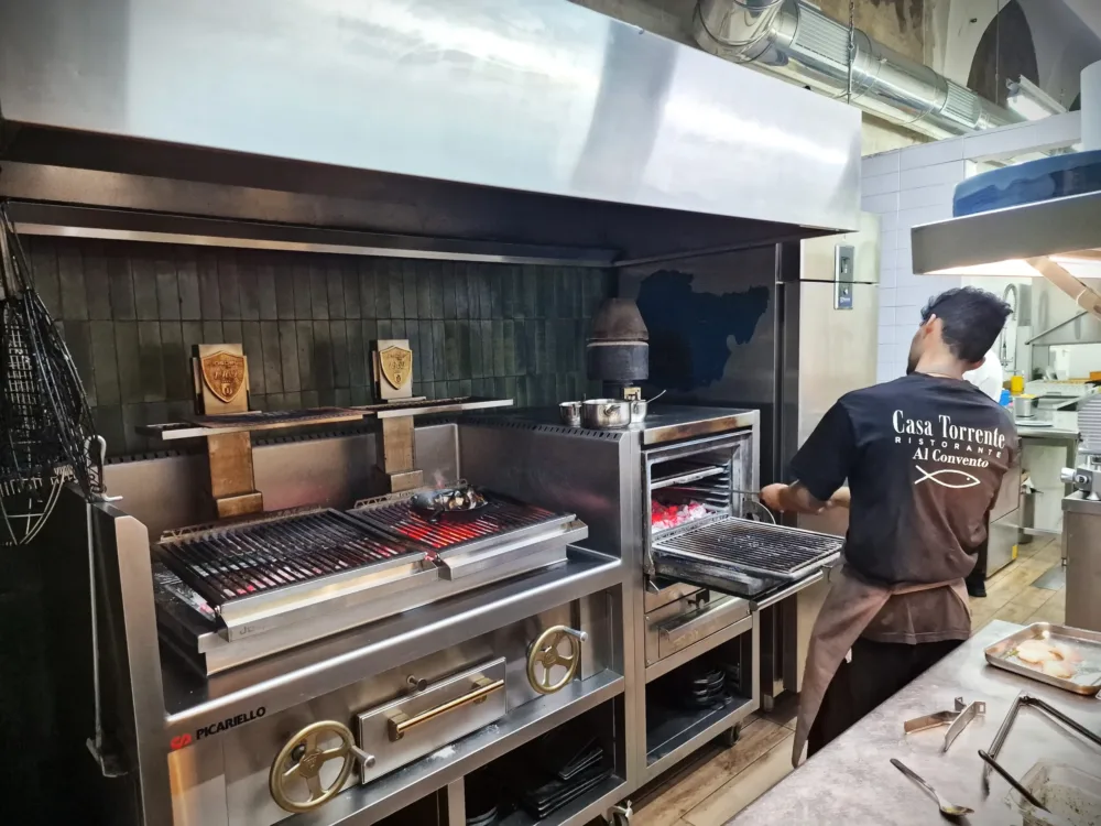C’è la grande novità della “brasa”, come la chiamano gli spagnoli. C’è il Josper, che fonde in una sola macchina le funzionalità della griglia e del forno, senza però quei fastidiosi inconvenienti legati ad una cottura “all’aperto” e studiato per lavorare ad alte temperature conferendo ai cibi un sapore deciso e note affumicate. C’è la cella, a vista, della frollatura del pesce, per esplorare nuovi sentieri.