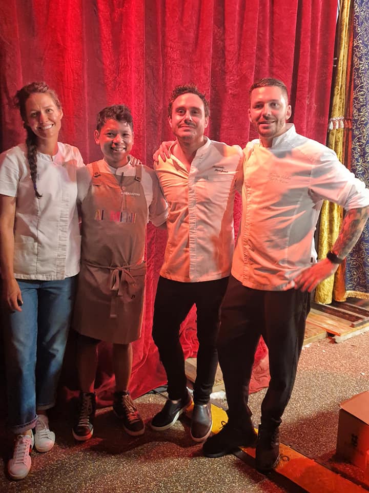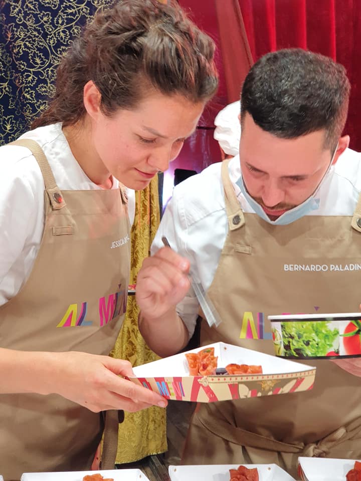 Sotto il tendone del circo di Al Mèni, ho trovato una canadese che lavora a Modena e che contamina il maiale affumicato con la canocchia; Un ragazzo romano che lavora a Dubai che deve servire la pasta rosa, però lo fa come se fosse una portata di formaggio; Un altro ragazzo che dal Vietnam cucina una crocchetta con il pesce dell’Adriatico usando la cultura delle spezie che si porta dentro; Un mirandolese puro sangue che deve ripensare la frittata e prende spunto da un creme caramel; Un giapponese che contamina i cassoni con i ravioli asiatici. Ci sono poche cose al mondo che contaminano così bene le culture, fornendone di nuove, come la cucina.