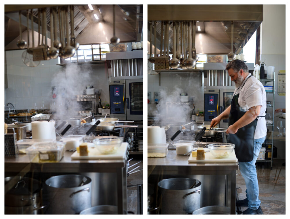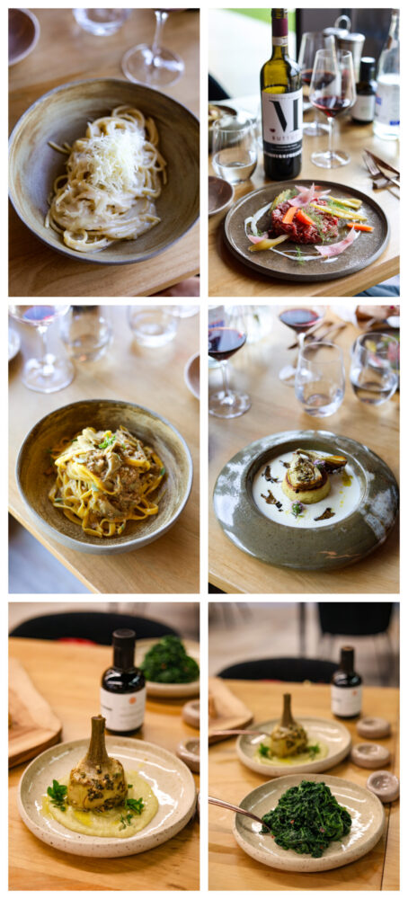 Frittata alla mentuccia, omaggio alla cucina contadina, la cacio e pepe dello chef, il carciofo alla romana, le tagliatelle fatte in casa con ragù di cortile e carciofi.