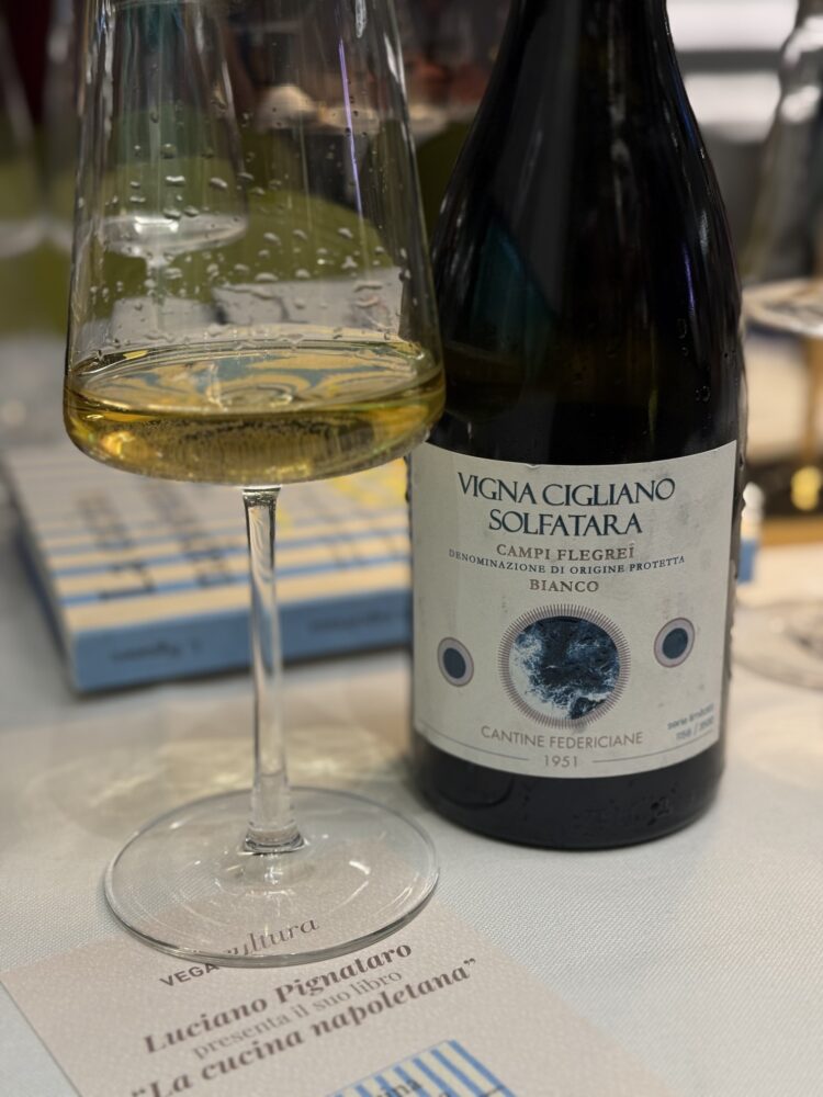 Accanto alla dimensione letteraria, un ruolo centrale è stato svolto dal vino. Protagoniste della degustazione sono state Cantine Federiciane, storica azienda vitivinicola dei Campi Flegrei, che per l’occasione ha presentato anche alcune magnum artistiche realizzate nell’ambito del progetto Flegreo-Art. Le bottiglie, dipinte a mano dall’artista Annalisa Saggiomo in collaborazione con il laboratorio VetrArte, diventano vere e proprie tele dedicate alla città di Napoli, omaggiando i 2500 anni della sua fondazione attraverso simboli, colori e paesaggi della cultura mediterranea.