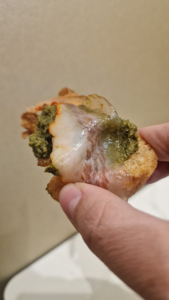 Uno delle migliori arrivi in tavola, non gustato pienamente perché ultima di un’importante serie di squisitezze.