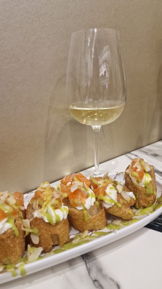 L’amuse bouche di Conza è l’inizio di un’importante proposta; davvero potente con quel crostino che unisce il calore dei friarielli alla ricchezza della pancetta di Patanegra.
