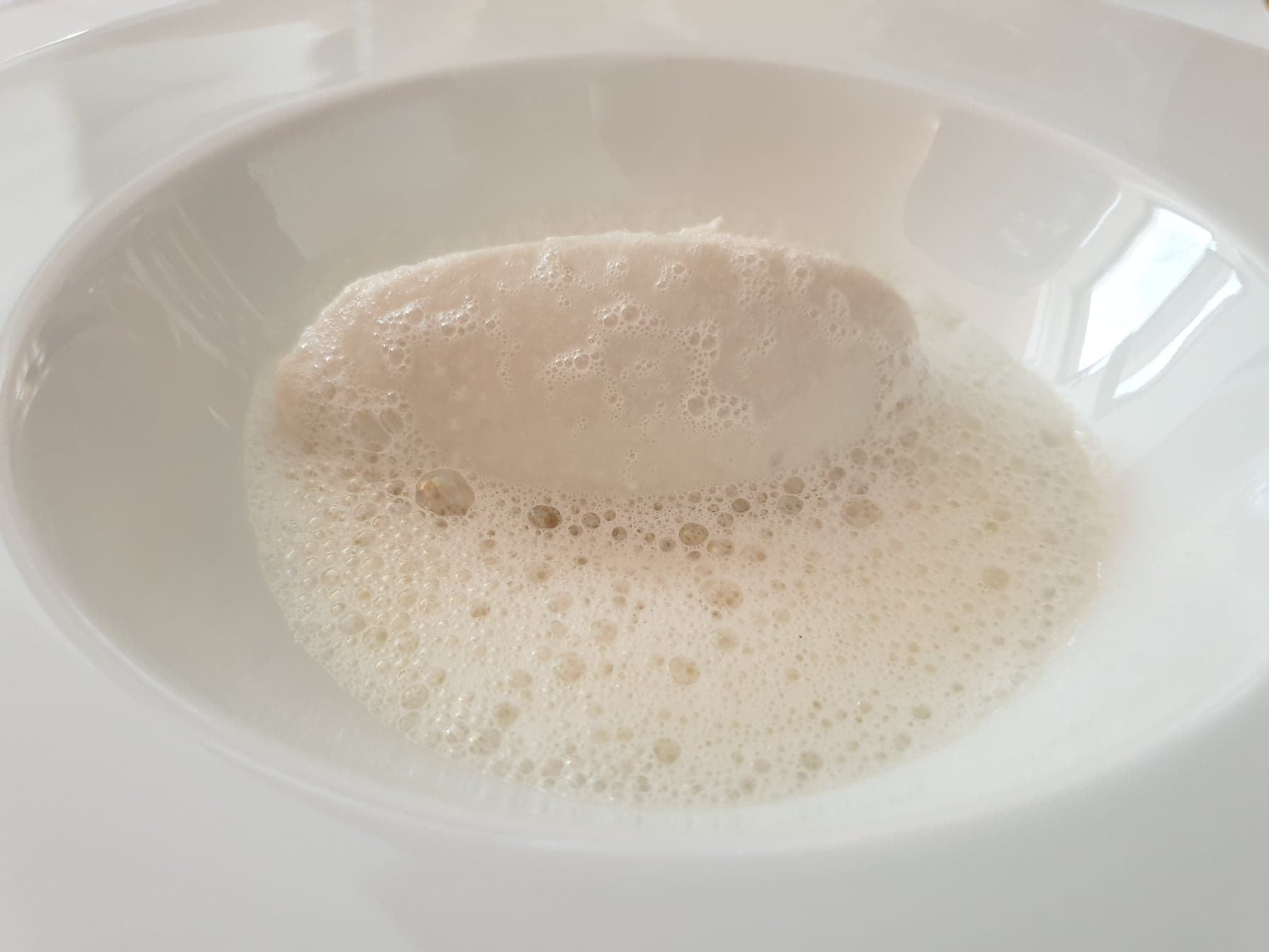 Se l’ambiente del ristorante richiama percezioni vintage i piatti invece ci proiettano nel futuro della cucina d’autore. Temi contemporanei che anticipati venti anni fa sono stati la traccia del futuro. Veniamo al nostro pranzo, completamente vegetale e di “stagione”, ad esclusione delle Coquille Sain Jaques, piatto buono ma il meno nelle mie corde. Le capesante, frullate e addensate, vengono servite come una quenelle, che per consistenza ricorda un gelato e il mitico Chaud-froid d’oeuf acidulé aux 4 épices.