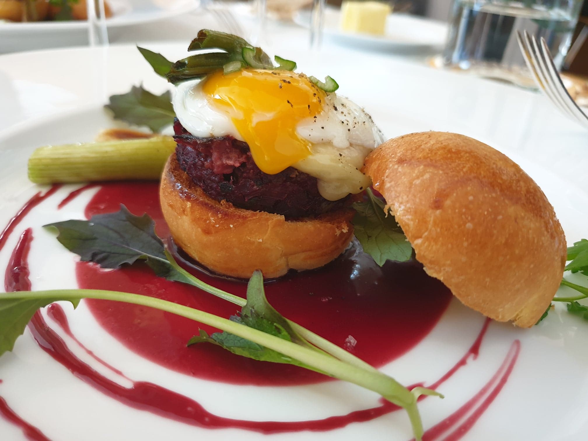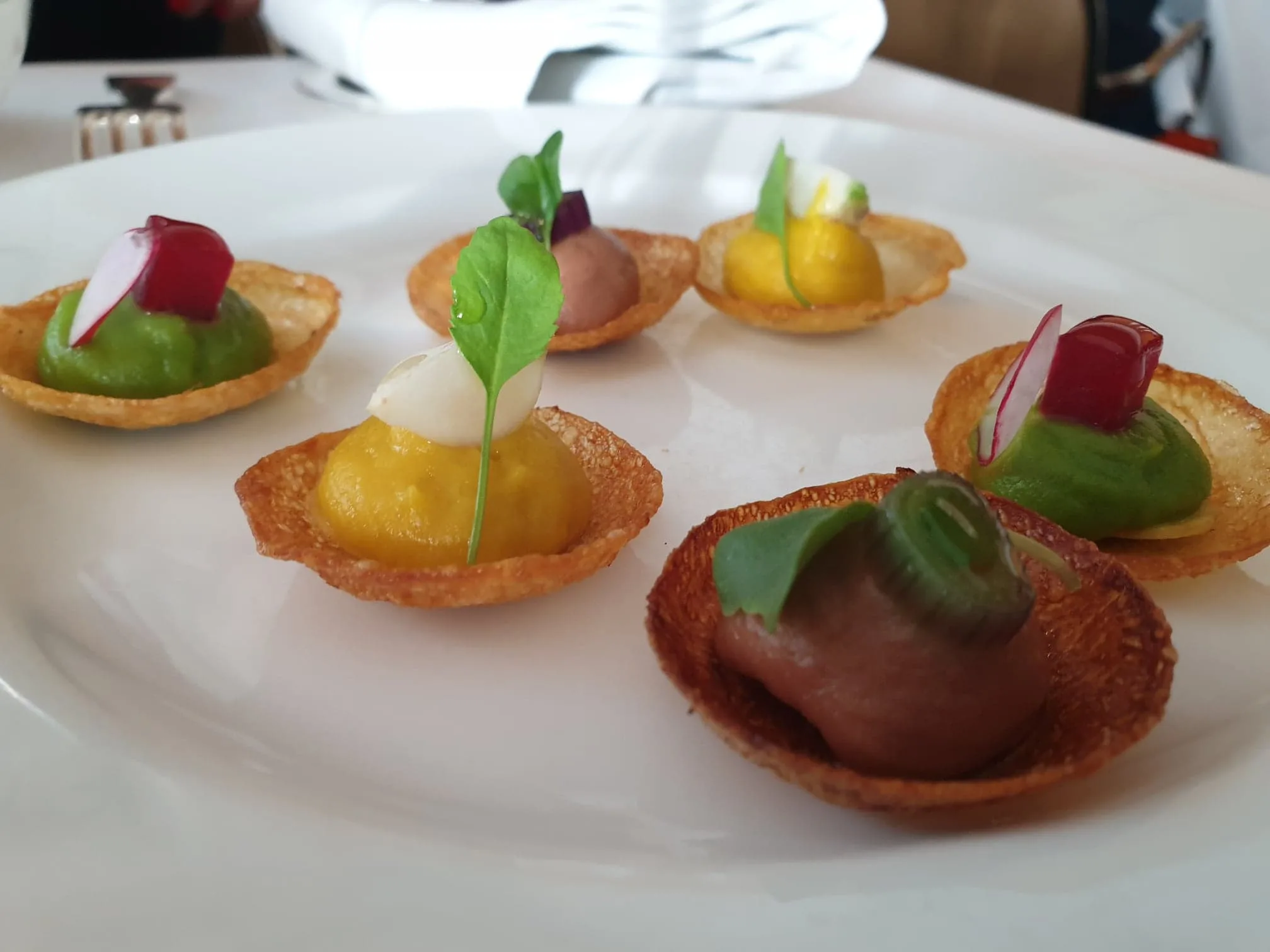 Il Gratin d’onion Sturon dorè al Parmigiano Reggiano amplifica le sensazioni dell’umami e del quinto gusto. L’asparago è veramente buono, ma la Tartare pourpre vègètal au couteau acidulè à la crème de raifort betterave de pleine terre è assolutamente geniale per esecuzione tecnica e fantasia. La rapa prende la consistenza della carne, ma restituisce tutta la forza gustativa della terra. Il Burger briochè vègètal à l’infusion de petales d’hibiscus è la dimostrazione che sei Passard puoi fare veramente tutto, con risultati sempre eccellenti.