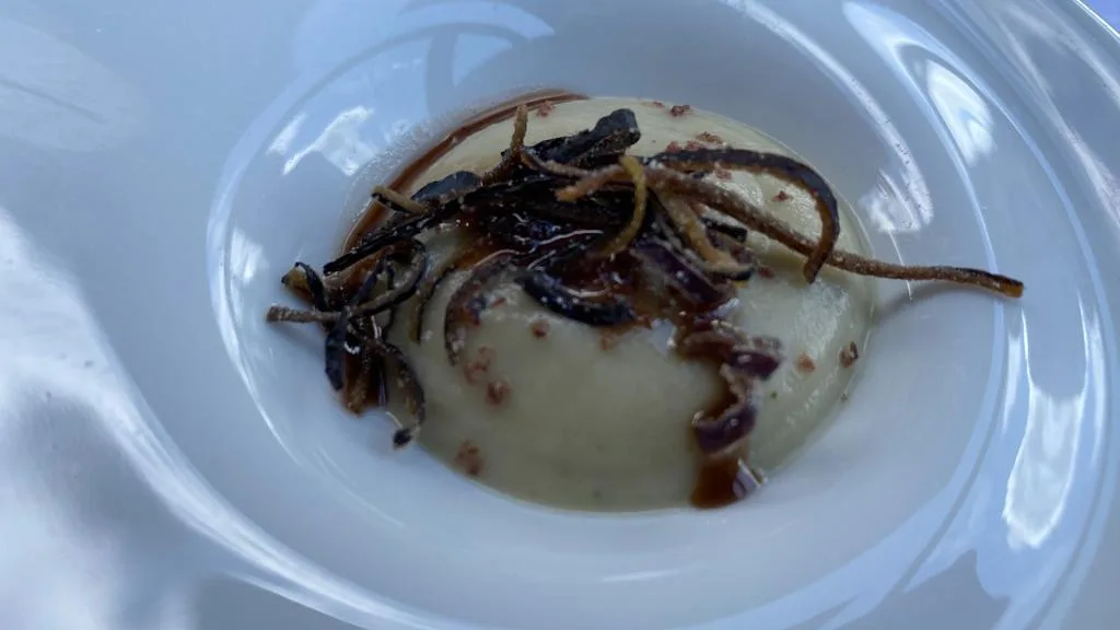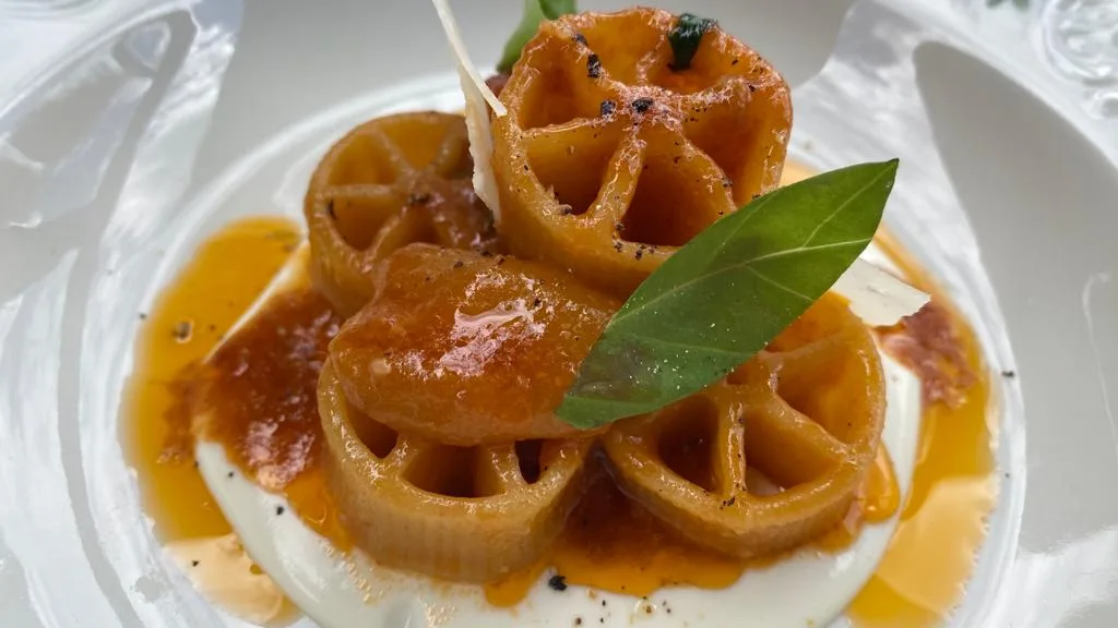 Uno dei piatti del menu dgustazione su piatto d’epoca