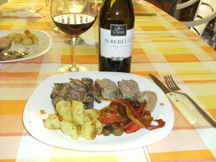 L’effetto visivo nel bicchiere è rubineggiante, con i bordi palesemente più chiari e lucenti. Il profilo aromatico ha risvolti fascinosamente umorali ed esplora sentori di terra, di pirite, di succosità fruttata del sottobosco e poi anche d’inebrianti effluvi di prugna e di ciliegia, intrecciati a fragranze floreali, ad una folta speziatura dai tratti orientali e a tocchi tabaccosi e liqueriziosi. Esprime infine una naturale interpretazione giocata su toni evoluti sapidi e di macchia mediterranea. In bocca il vino ha subito un impatto caloroso per via dell’elevata alcolicità e immediatamente dopo riflette un portamento austero da noblesse oblige, quasi altezzoso. Il sorso sembra che voglia prendere l’ascensore per risalire il più alto possibile, fino a permeare tutta la cavità orale, per poi ridiscendere per farsi fotografare senza maquillage, naif e naturale come mamma l’ha fatto! Ed allora, come novella Marilyn Monroe, si concede in tutto il suo splendore, con una tensione gustativa potente, sagacemente tannica, fine, sapida, speziata, caratteriale, tostata, vitale, equilibrata, armonica, corposa, elegante, morbida e rotonda. Il finale è intelligibilmente scritto nel dna del vitigno: venatura amabilmente amarognola che appaga e permea tutto l’apparato boccale. Vino dalla lunga vita e da abbinare a piatti a base di carne e formaggi stagionati. Io l’ho testato su un godurioso polpettone di carne mista ripieno di caciocavallo, con contorno di funghi porcini, peperoni arrostiti e patate arrecanate. Prosit!