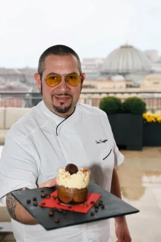 ‘A vita mia, la proposta del pastry chef Giuseppe Cristofaro, della Pasticceria La Dolce Voglia di Frattaminore, in provincia di Napoli, è un omaggio alla nonna da poco venuta a mancare. La forma del dolce, ottenuta senza stampo, ricorda il Vesuvio. Il ripieno di mousse alla vaniglia è stato racchiuso in uno scrigno di cioccolato color oro, la giusta cornice per il dolce principe della pasticceria partenopea.