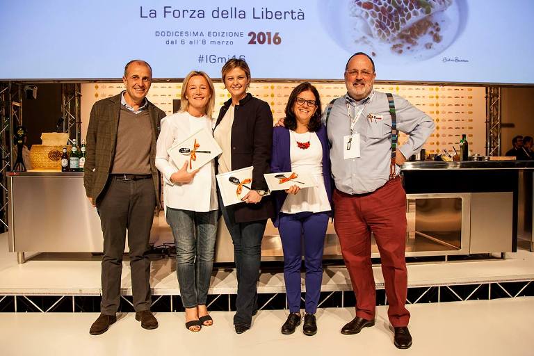 Il premio atCARMEN consegnato da Paolo Marchi a Mariella Organi della Madonnina del Pescatore, Rossella Cerea del ristorante Da Vittorio e Mariella Caputo della Taverna del Capitano.