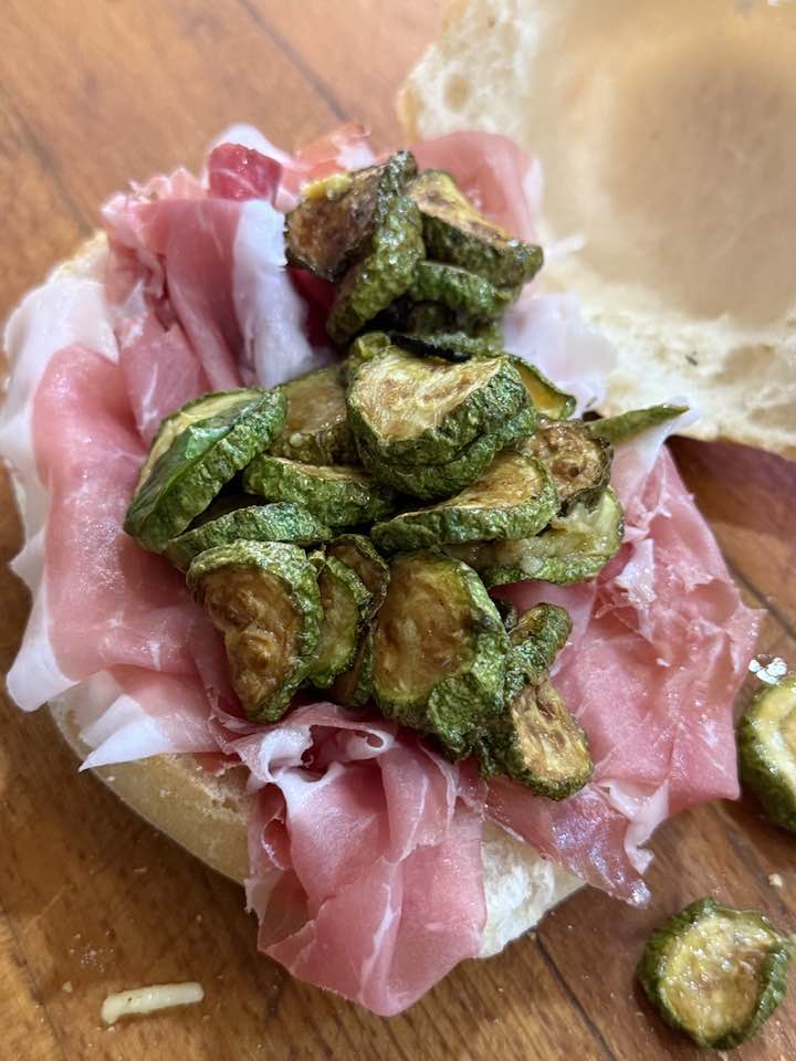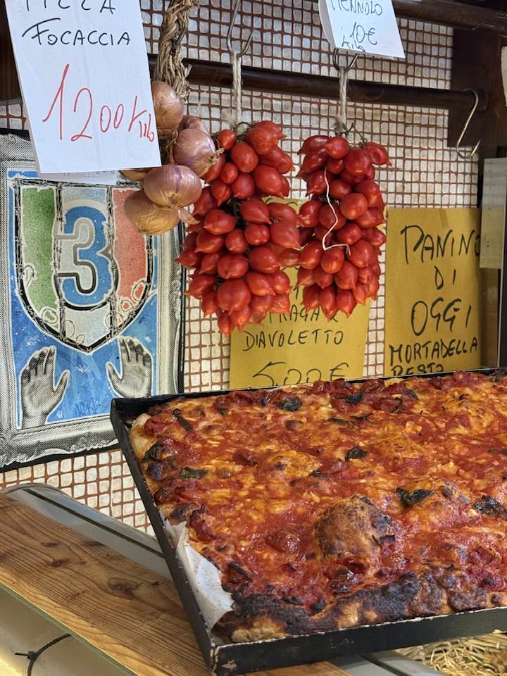 Ma Alfonso ama anche cucinare e quindi è possibile trovare piatti pronti da portare via o consumare in loco, con le migliori materie prime del territorio, ad iniziare dai pomodorini del piennolo, con cui realizza una gustosissima focaccia. Una sosta pranzo veloce ma di gran gusto.