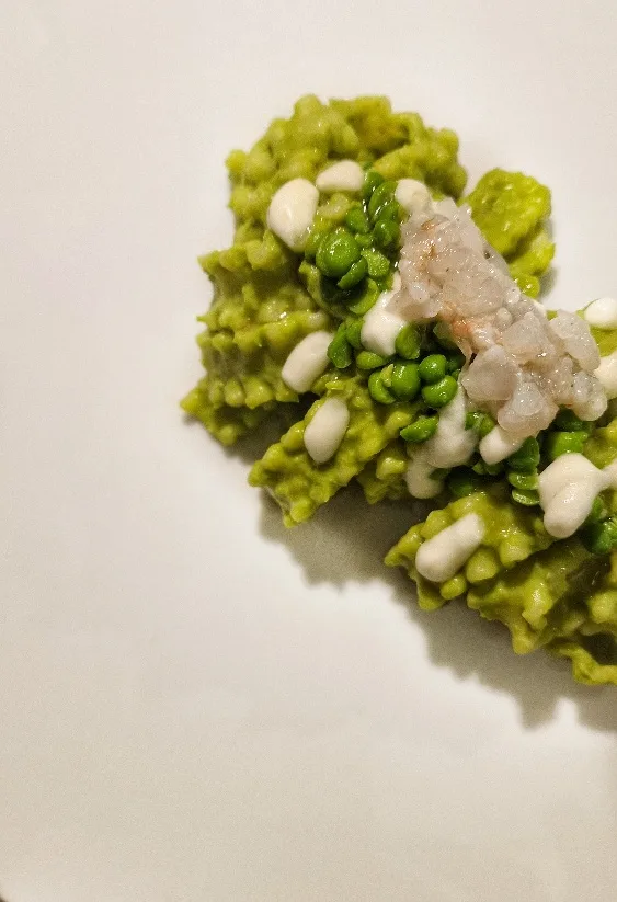 Tra i primi piatti, piacevoli e delicate le mafalde con piselli e scampi, entrambi in doppia consistenza, bufala e limone.