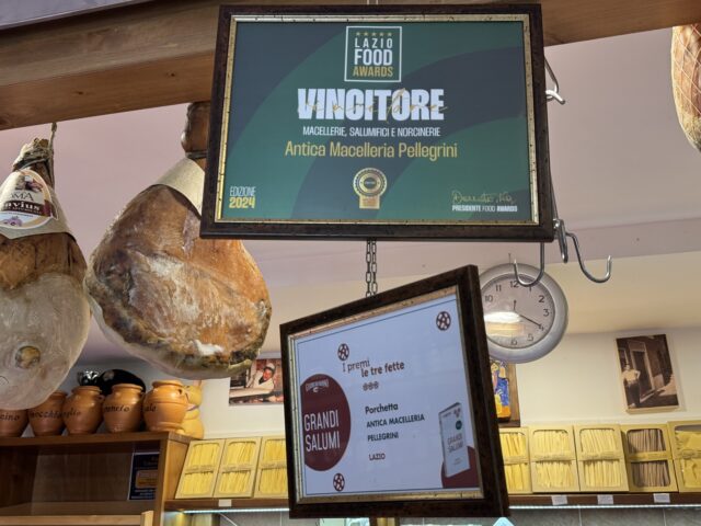 “Dove ci sono le donne succedono sempre cose speciali,” racconta Marco, “così è stato con mia nonna Felicola, che ha saputo calibrare spezie e sale per una ricetta che da oltre un secolo ci tramandiamo da orecchio a bocca, perché non è mai stata scritta.” A parlare è proprio Marco, che tra un cliente e l’altro torna al banco e racconta il successo della macelleria, le cui pareti espongono i tanti premi conquistati nei concorsi nazionali, incluso uno per la migliore porchetta del Lazio. E in effetti, l’ assaggio conferma il sapore verace ed equilibrato, con il sale e il pepe ben calibrati e le note aromatiche di salvia, coriandolo, timo e rosmarino ben in evidenza, mentre la cotica rimane croccante.