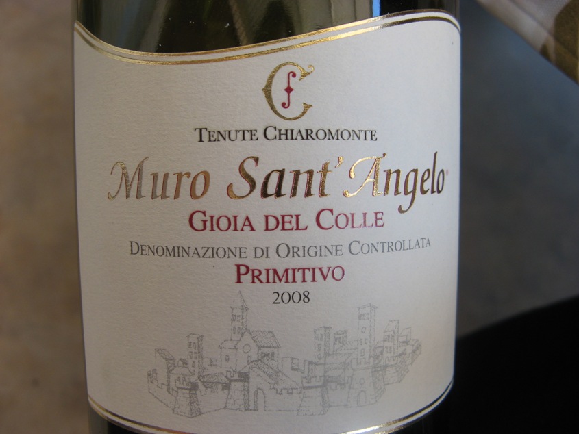 Rosso rubino carico, è un vino che ha materia, ma si fa bere con facilità, anzi è difficile fermarsi. Il naso è avvolgente con profumi di terra bagnata, poi frutti scuri, ma croccanti, more e ciliegie, ben fruibile la violetta e delicati i toni speziati di ciccolato e cannella .In bocca ha buon corpo, esprime un certo dinamismo tra la burrosità glicerica, la pungenza dei tannini e la spinta freschezza. Chiaromonte Gioia del Colle Riserva 2005 ( 13.000 bt. 49€), sicuramente il vino di punta dell’azienda, espresso in maniera pregevole in questo millesimo. Le bottiglie prodotte sono 13.000 ed il costo è di 49€. Rosso rubino intenso, ha grande carattere sia al naso che in bocca che esprime lentamente nel bicchiere. Ha naso ampio ed elegante con profumi di scorza di arancia, poi di amarene e more, ben marcati i toni di macchia mediterranea, è balsamico e cioccolatoso. In bocca ha buona complessità di sapori pur risultando agile, i tannini fitti e compatti e la buona trama acida sostengono con armonia l’importante presenza di alcol.