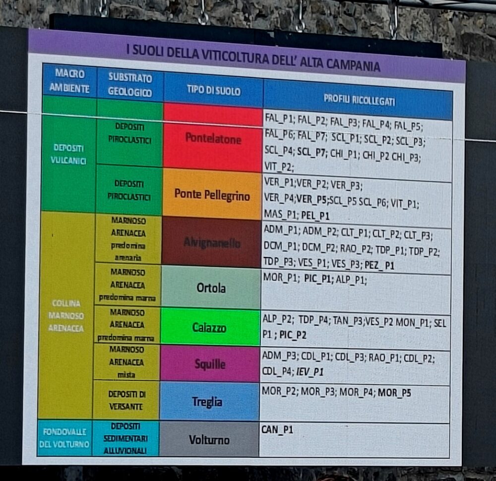 Per questo progetto ho lavorato in particolare con Giovanni Piccirillo e Alessandro Fiorillo (ovviamente insieme a Massimo Alois ed a tutti i produttori dell’Alta Campania) con i quali abbiamo condiviso lo studio del suolo, raccogliendo informazioni sul suolo, studiando i vari strati che compongono il terreno, capirne l’evoluzione, la storia, capire anche la relazione che il singolo suolo può avere con la pianta. E definire quali possono essere le considerazioni di gestione agronomica migliore. Abbiamo individuato 8 tipologie di suolo; ma la variabilità che abbiamo trovato si può verificare nella pedoteca esposta”.