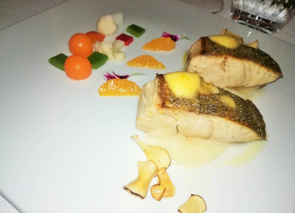 Sensi – Ricciola con topinambour e giardiniera di verdure