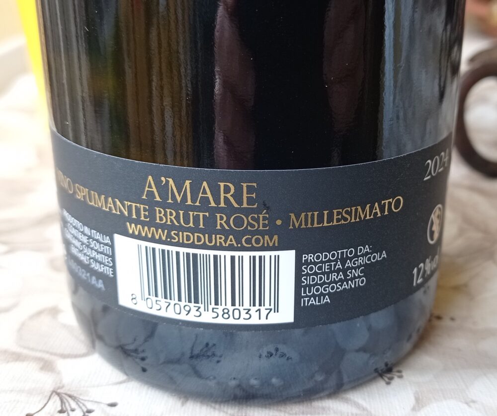 Ecco qui un ottimo ed inedito spumante rosato sardo dell’azienda gallurese Siddùra di Luogosanto, che ho appena assaggiato: A’Mare Vino Spumante Brut Rosé Millesimato 2024, prodotto con uve locali a bacca rossa. Affinamento in acciaio e subito dopo si avvia la rifermentazione in autoclave secondo il metodo Martinotti. Imbottigliamento ad inizio 2025. Tasso alcolico di dodici gradi. Prezzo finale di 20,00 euro.