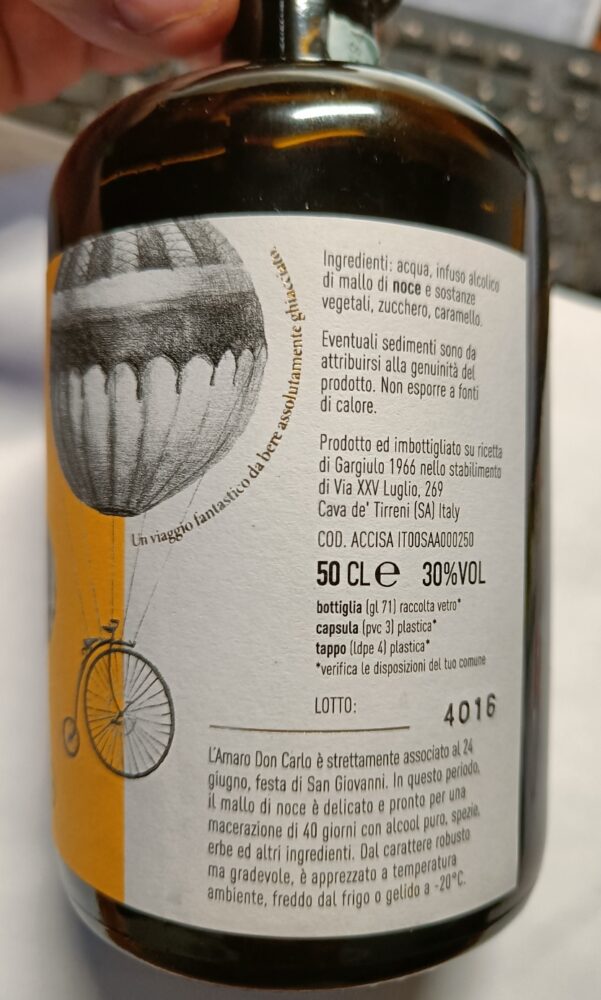 Ultimamente ho assaggiato l’amaro Don Carlo, un liquore a base di erbe e mallo di noci la cui formula è stata messa a punto da Angela Caliendo.