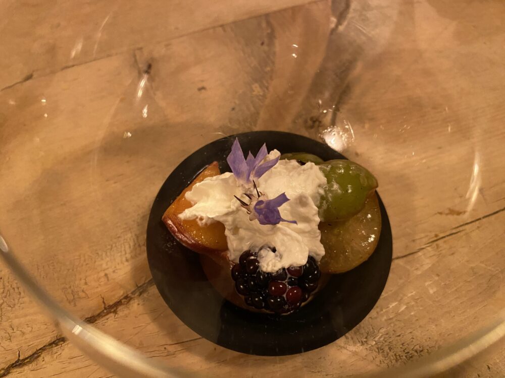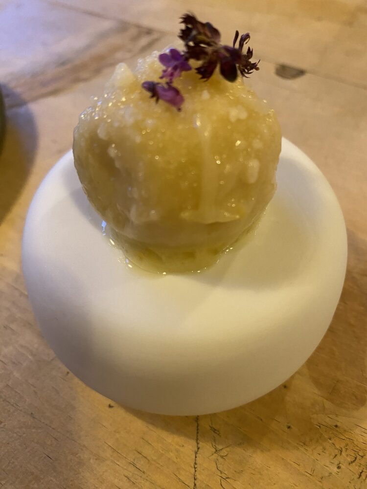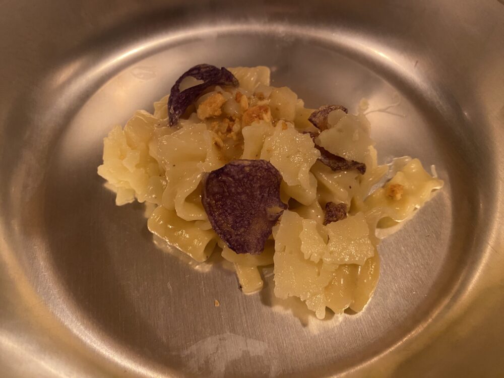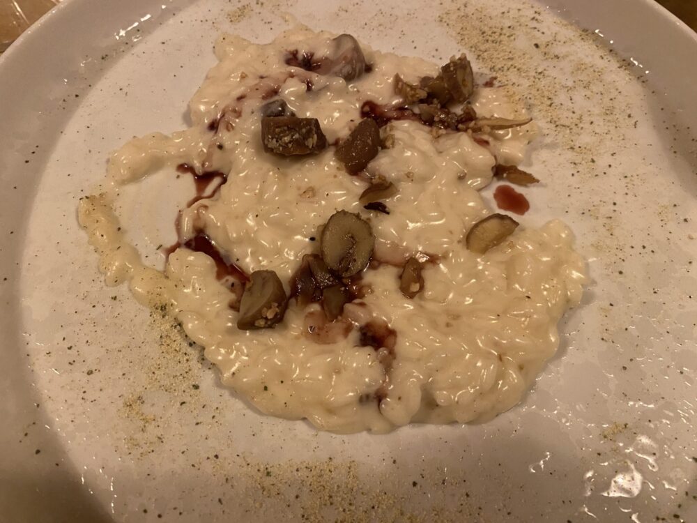 Gianni Tarabini ha proposto una variazione di rapa con caviale di basilico (magnifica) e un risotto al latte e castagne, sempre nell’ottica di ricordare un territorio aspro che si sta aprendo alla contemporaneità con ottimi risultati.