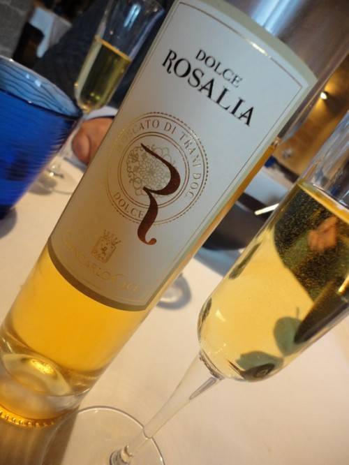 Pieni, ma soddisfatti, ci rinfranchiamo dalla piacevolissima”fatica” con il moscato di Trani “Dolce Rosalia” annata 2009 di Giancarlo Ceci, biologico, per niente stucchevole, di soli 13,5°in volume alcolometrico e…che scende eccome, forse fin troppo!!!