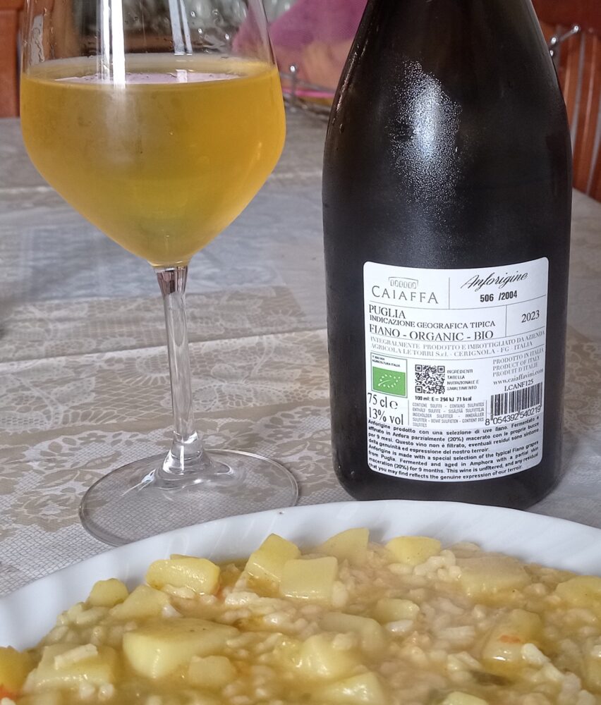 Ecco qui un ottimo vino bianco pugliese che ho appena assaggiato. Si tratta dell’etichetta Anforigine Fiano Organic Bio Puglia Igt 2023 prodotto dalla famiglia Caiaffa (Francesco, Piero, Adriano, Daniele, Angela e Marco) dell’azienda agricola biologica Le Torri di Cerignola.