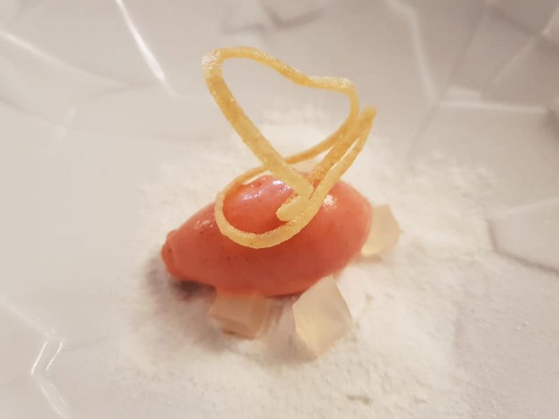 Davvero brillante l’intuizione di usare un grasso vegetale, la mandorla in questo caso, per la seppia, ingrassa senza essere invasivo, l’acidità e la freschezza del limone completano in piatto.