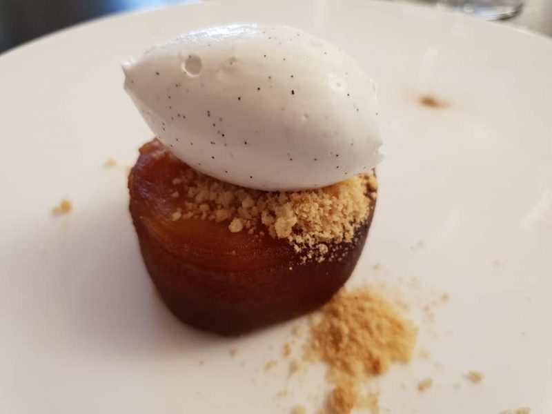 La “parte dolce”, quasi priva di zucchero, ottima proprio per questo motivo, vede, nella millegiri “tatin” di mele con panna e cioccolato bianco, un dolce che tra la note acidule e amarognole, un fine pasto delizioso.