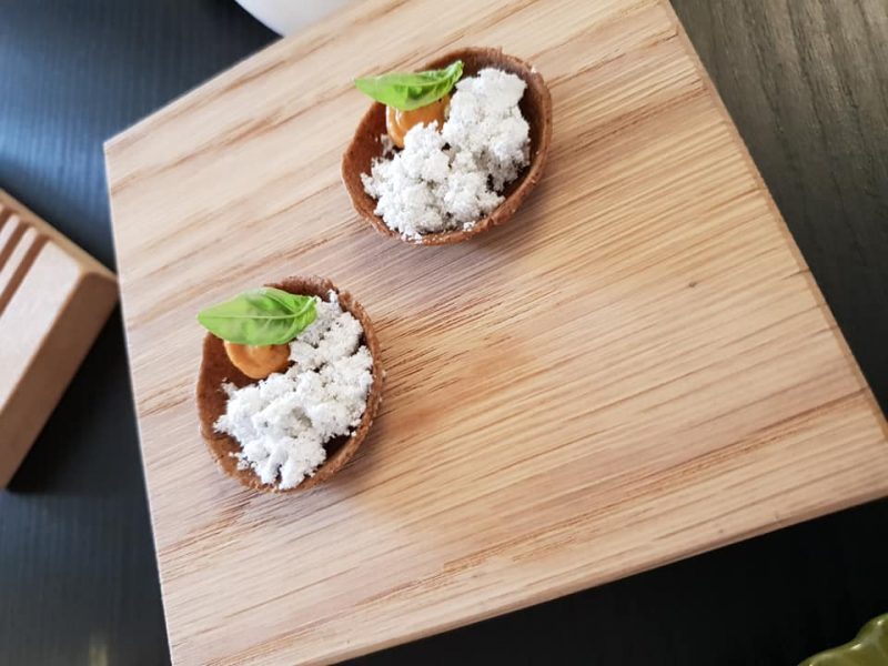 Piedi saldi nella propria terra, ragù e orecchiette, ma con la tecnica del grande cuoco. Un piatto che trova un’eleganza, sia palatale che nella presentazione, non comune. Il ragù dopo le tante ore di cottura ha un gusto deciso, ma non copre la parte amidacea della pasta che riesce a fare da spalla. La fonduta di canestrato, leggera e ben bilanciata, amalgama il tutto.