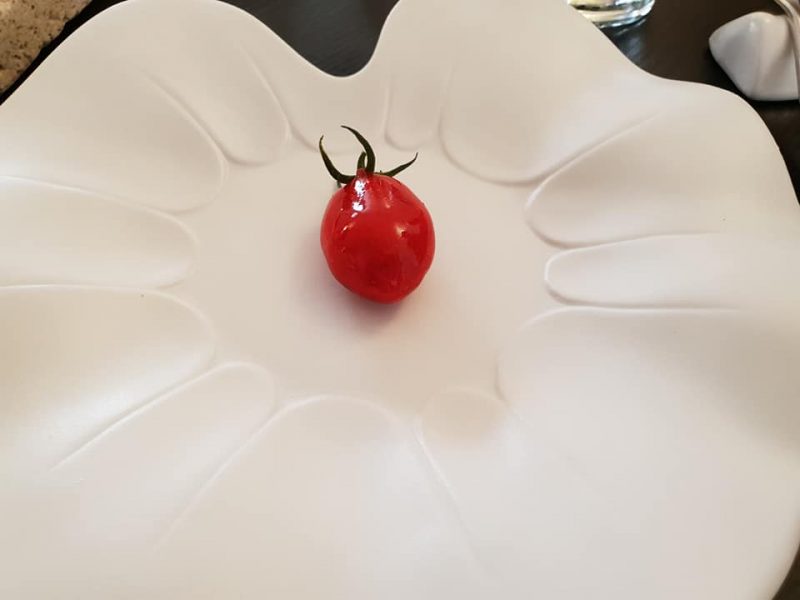 La potenza senza il controllo è nulla. Così recitava un famoso spot Pirelli che vedeva protagonista il “fenomeno” Ronaldo. Una melanzana concentrata nel gusto, potente nelle sensazioni palatali. La tecnica, il controllo, media questa potenza, senza mai perdere un elemento fondamentale del cibo: la golosità. Nella scelta degli ingredienti da accostare, la vena mediterranea e territoriale di Angelo la fanno da padrone. Il risultato finale è elegante nel gusto e nella presentazione. Piatto manifesto. Lo rivedremo il 23 e 24 maggio a LSDM proprio con le evoluzioni nel tempo di questa preparazione.