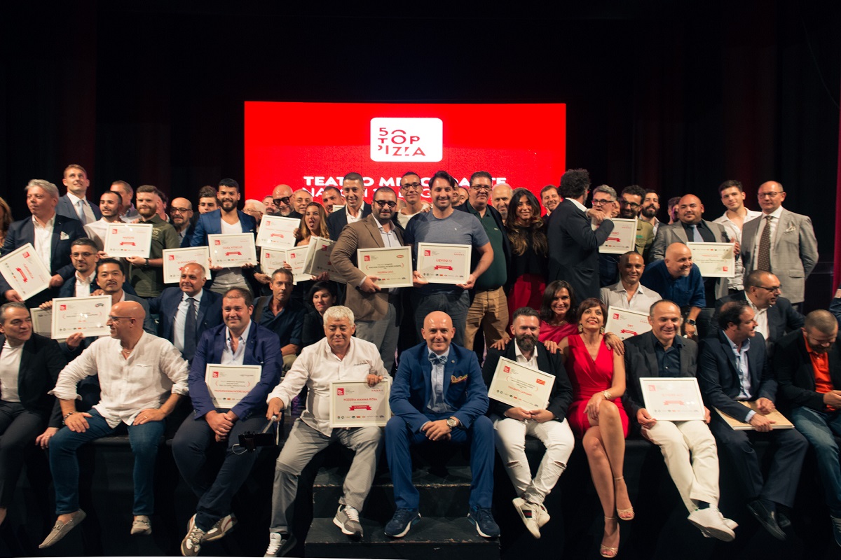 la foto conclusiva, di 50 top pizza 2018 al Teatro Mercadante