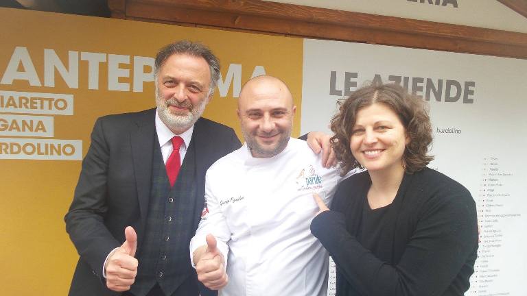 All’Anteprima 2016 il progetto Pizza- Chiaretto è stato presentato alla stampa senza tante parole o preliminari, ma passando direttamente alle vie di fatto, ovvero facendo arrivare da Napoli il pizzaiolo Giuseppe Pignalosa, patron delle Parùle. Giuseppe ha preparato pizza margherita, la regina, poi il suo cavallo di battaglia “Scarulella”, con scarola, fior di latte, olive itrane, capperi di Salina e acciughe cetaresi. Visto il grande successo dell’iniziativa, il pizzaiolo napoletano ha ideato sul momento la Pizza Chiaretto, con radicchio trevigiano, gorgonzola, fior di latte e noci.