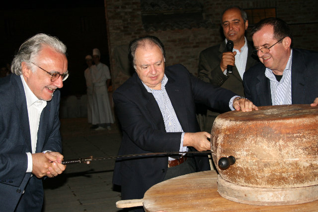 Di altra pasta è fatto il grande ALAIN DUCASSE , venuto fin qui da uno dei suoi 20 ristoranti sparsi nel mondo per ricevere il premio a lui dedicato. Deliziosi atteggiamenti i suoi, di uno, è vero, abituato a grandi palcoscenici, ma sottoporsi con civilissimo compiaciment , solo velato da leggera ironia verso la celebrità intesa come parossismo del mondo odierno, ad un fuoco di fila pazzesco di fotografie, mani strette, domande di ogni tipo ed ammennicoli vari, con quella leggerezza di aspetto e di gesti mi è parso sintomo di grande umanità e non solo di abituale professionalità. Non gli ho mai visto un lieve gesto di insofferenza , nemmeno verso gli eserciti di zanzare che ci hanno assillato nella prima parte della serata. DEL RESTO IO MI SONO PERMESSO DI CHIAMARLO SEMPRE DUCAZZ, perche’ uno così ,in tutto e per tutto, è dotato di almeno due impianti idraulici completi.