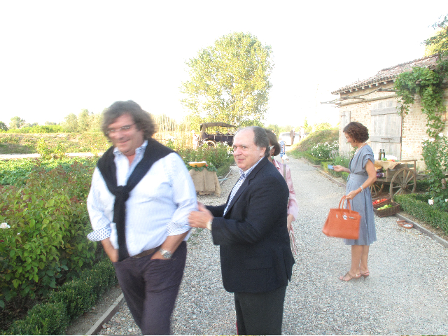 Belle presenze, signore delicate, chef come piovesse : i SANTINI, BERTON , BOTTURA , il festeggiato , con una torta apposita, MARCHESI per i suoi ottanta anni , ed altri ancora.in un cortile a lato della corte dove poi si sarebbe svolta la cena si sono svolte le presentazioni dei premiati, facendo sedere gli ospiti su simpatiche balle di paglia. Qualche domanda , con traduzione, di Vizzari a Ducasse e qualche battuta di suggestione di Bottura, che raccontava fatterelli al tempo di quando lui da Ducasse faceva il piccolo di cucina.