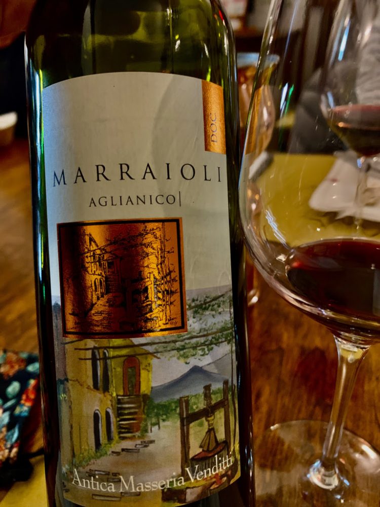 Marraioli Aglianico Riserva Sannio 2021. Soltanto Aglianico maturato per tre anni in acciaio e poi elevato in boccia per sei mesi. Gradazione alcolica di tredici e mezzo. Prezzo finale di 20,00 euro.